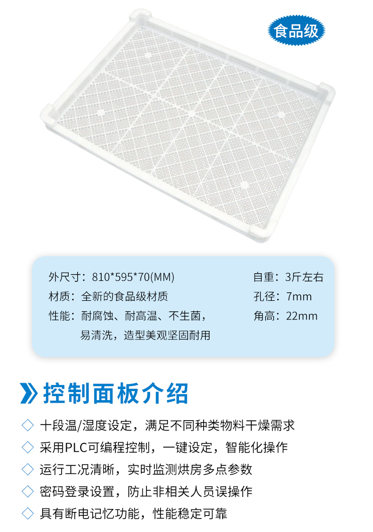4.大風(fēng)量多風(fēng)機(jī)送風(fēng),烘房?jī)?nèi)360度溫度均勻,產(chǎn)品均勻性好。