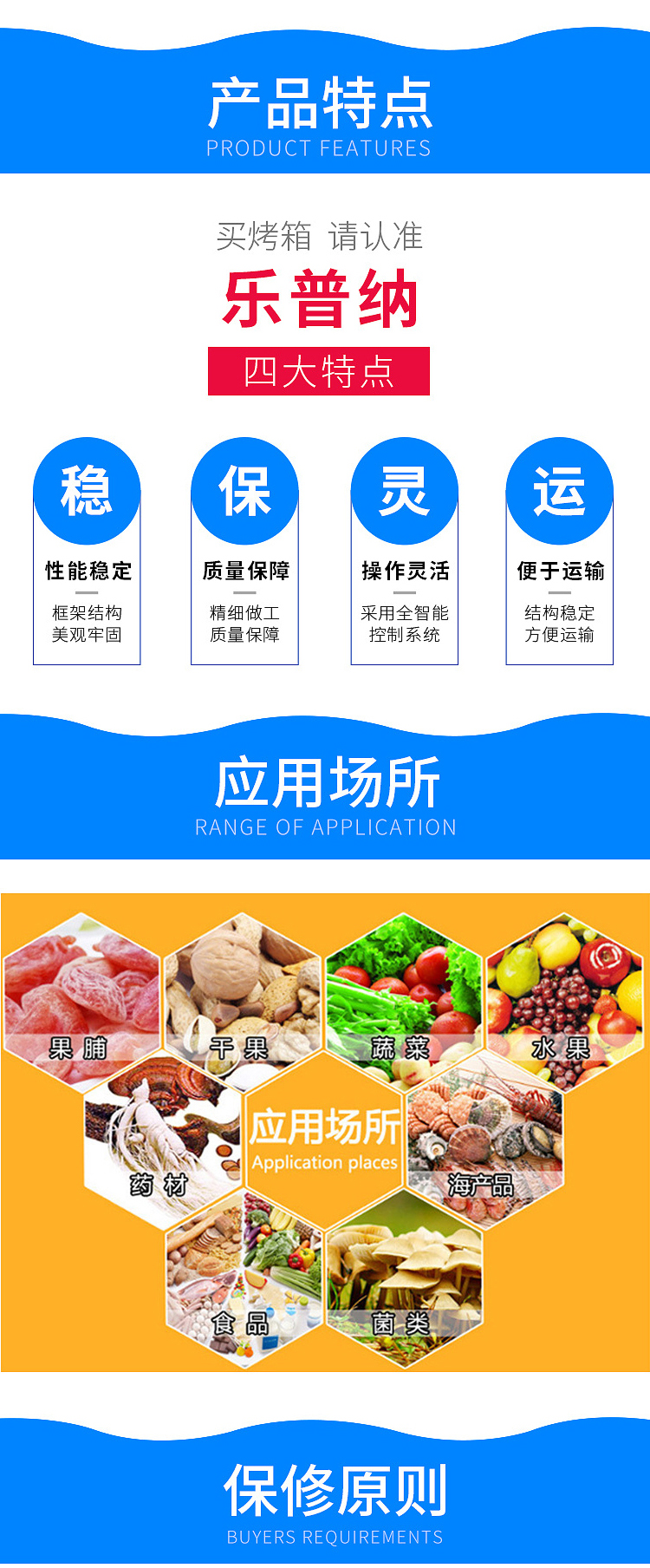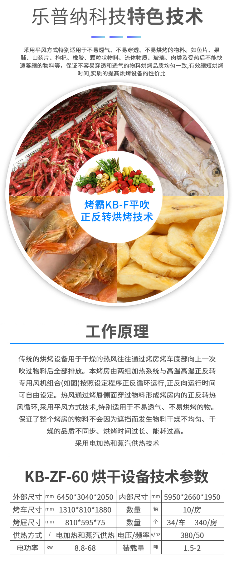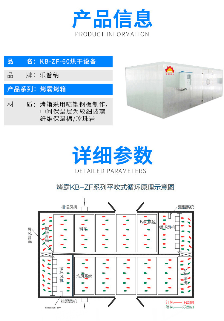 樂普納科技烤霸系列烘干房有兩種熱風循環(huán)方式KB/KB-ZF系列,用戶需根據(jù)物料的特性進行選擇。烤霸系列烤房采用(蒸汽、電)為原料,結(jié)構(gòu)上采用高密度彩色復合墻板,保溫性能好,熱效率高,烤房內(nèi)溫度均勻、不泄漏,結(jié)構(gòu)牢固、外形美觀,防風防雨。自動控制系統(tǒng)硬件采用進口PLC系統(tǒng);設有自動報警系統(tǒng)(對設備運行進行監(jiān)控,對各種故障進行報警,同時啟動保護裝置)一切由設備自動判斷。自動設置參數(shù)烘烤控制精度高,也可分多段進行控制,用戶可根據(jù)自身需求,對時間、溫度、濕度進行設定。